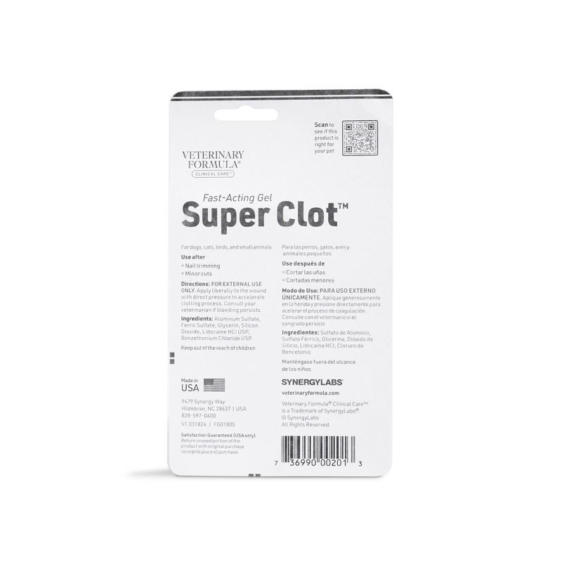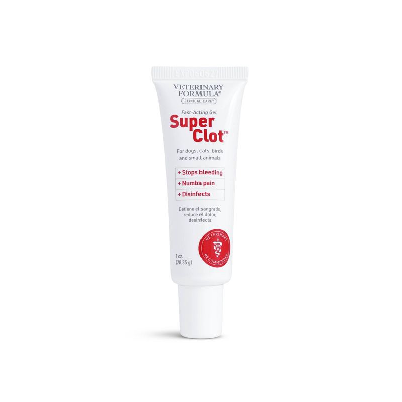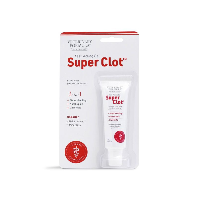 Veterinary Formula Clinical Care Fast-Acting Gel Super Clot™ is a quick-response 3-in-1 hemostatic gel designed to stop minor bleeding fast while also numbing pain and disinfecting the affected area. …