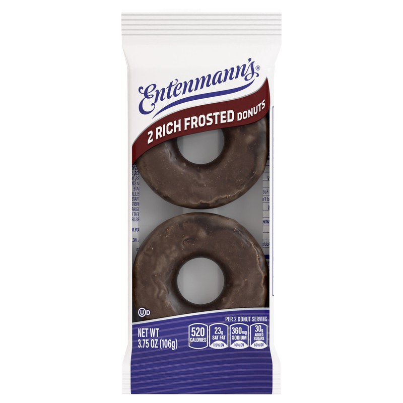Per 2 Donut Serving: 520 calories; 23 g sat fat (115% DV); 360 mg sodium (16% DV); 30 g added sugars (60% DV). www.entenmanns.com. SmartLabel: Scan for more food information or call 1-800-432-8266. fb…