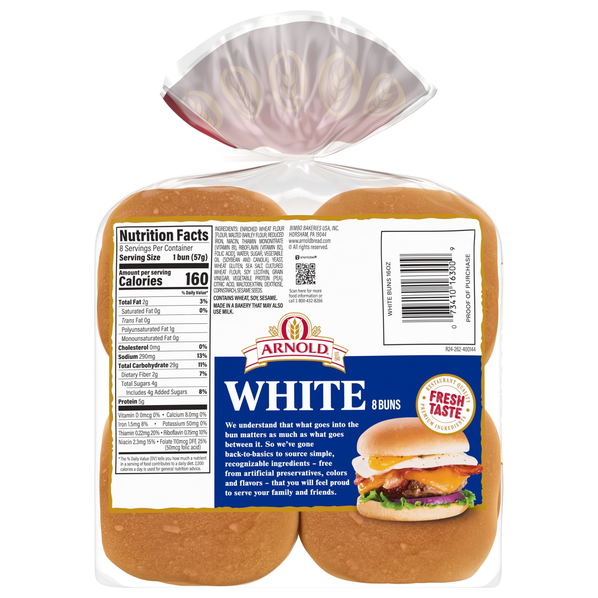 8 pre-sliced gourmet buns. Made with the highest quality simple, recognizable ingredients, free from artificial preservatives, colors or flavors.