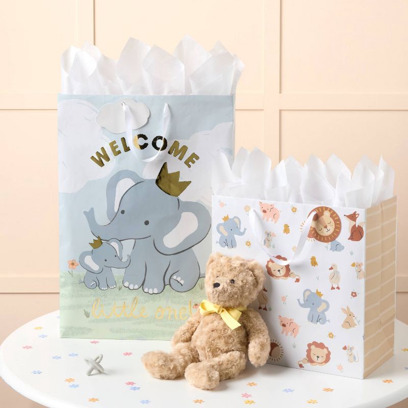 Large Square Animal Scatter Print Baby Shower Gift Bag Colorful - Spritz™