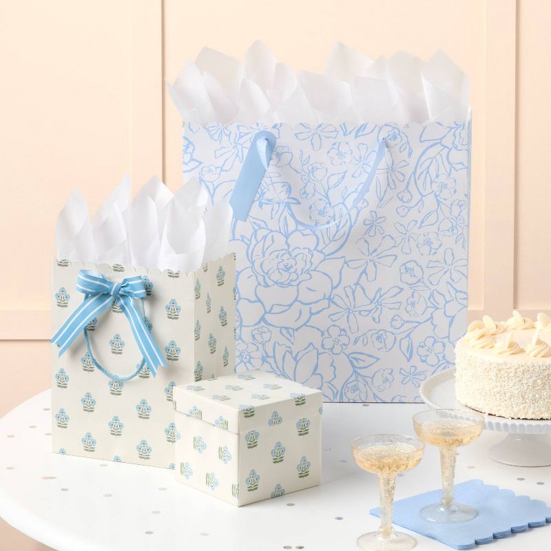 Large Square Floral Wedding Gift Bag with Tag Blue/White - Spritz™