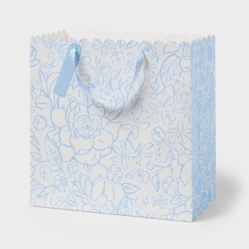 Make any gift feel special with the Large Square Floral Wedding Gift Bag with Tag Blue/White - Spritz™. The blue and white floral design adds a fresh touch while the roomy square shape fits larger pre…