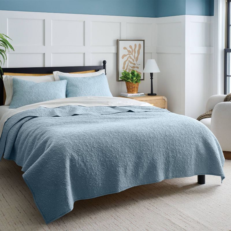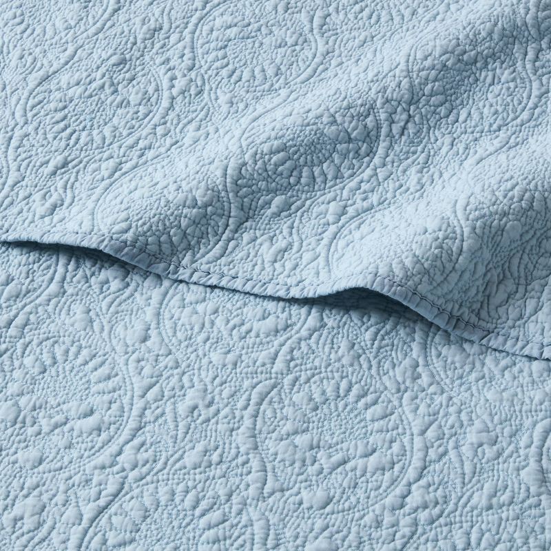 Full/Queen Heirloom Floral Stitch Quilt Light Blue - Threshold™