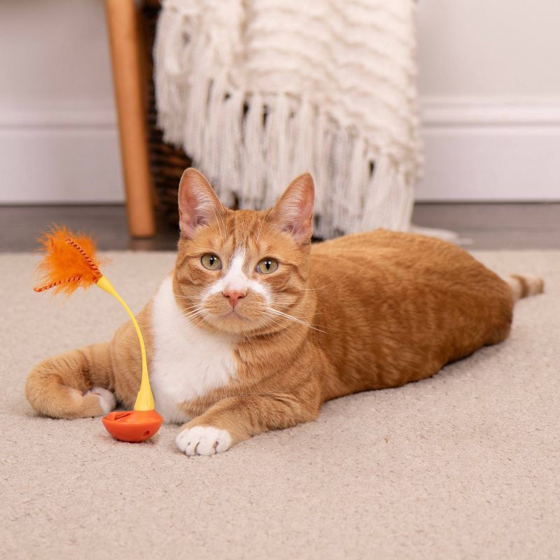 - PREY-LIKE MOVEMENT: Activates prey drive by wobbling & swaying to entertain cats BOLD FEATHERS & RIBBONS: Entices cats with embellishments that draw attention MADE FOR SOLO & INTERACTIVE PLAY: Place on the ground or use as a wand to bond with your pet. MEASURES: 1.8"W x 4.97"H