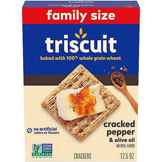 Triscuit Cracked Pepper & Olive Oil Whole Grain Wheat Crackers Family Size - 12.5 Oz