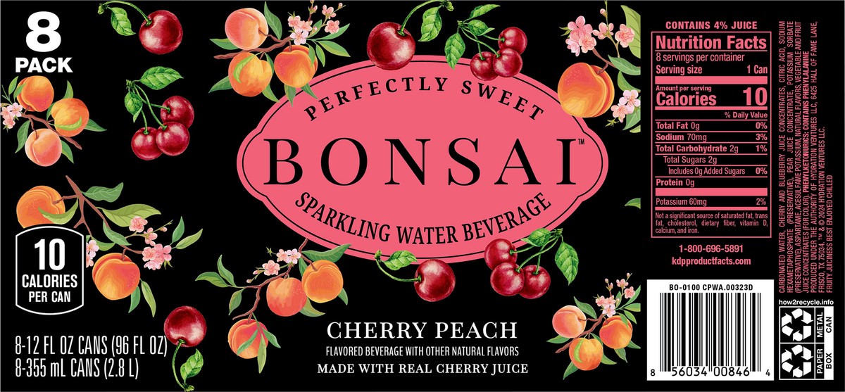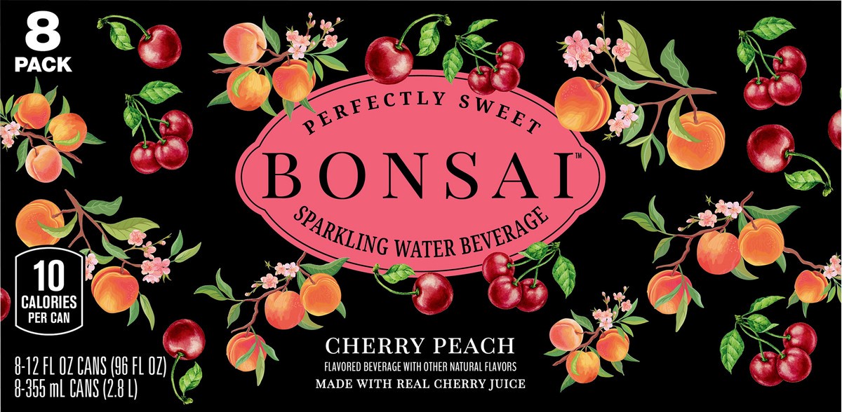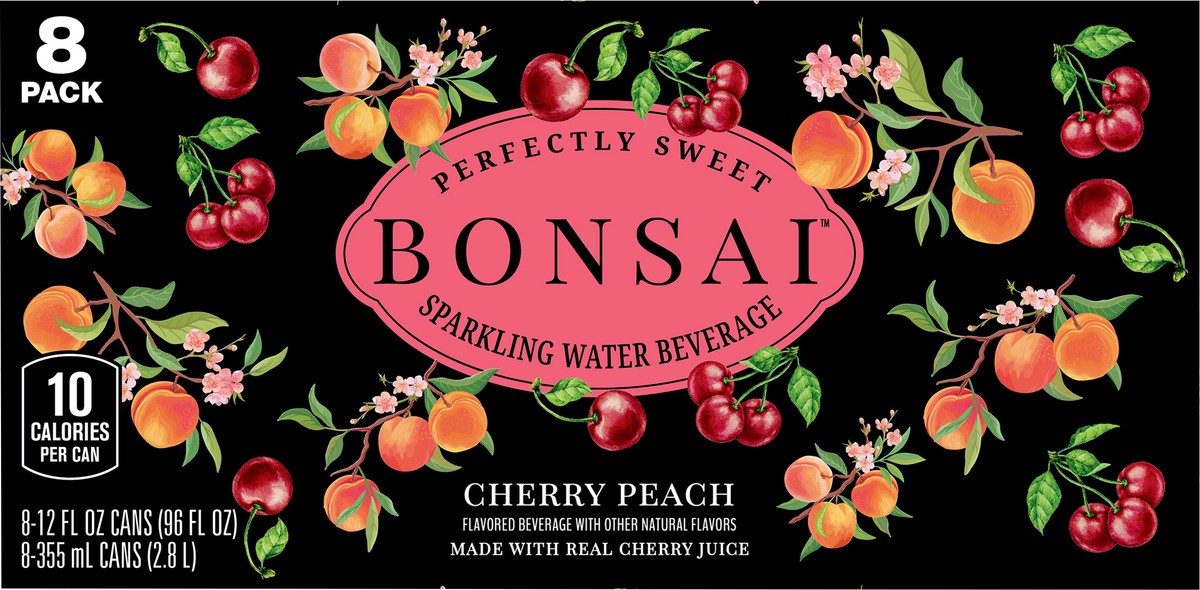 BONSAI™ sparkling beverage Bonsai Cherry Peach Sweetened Sparkling Water, 12 fl oz cans, 8 pack
