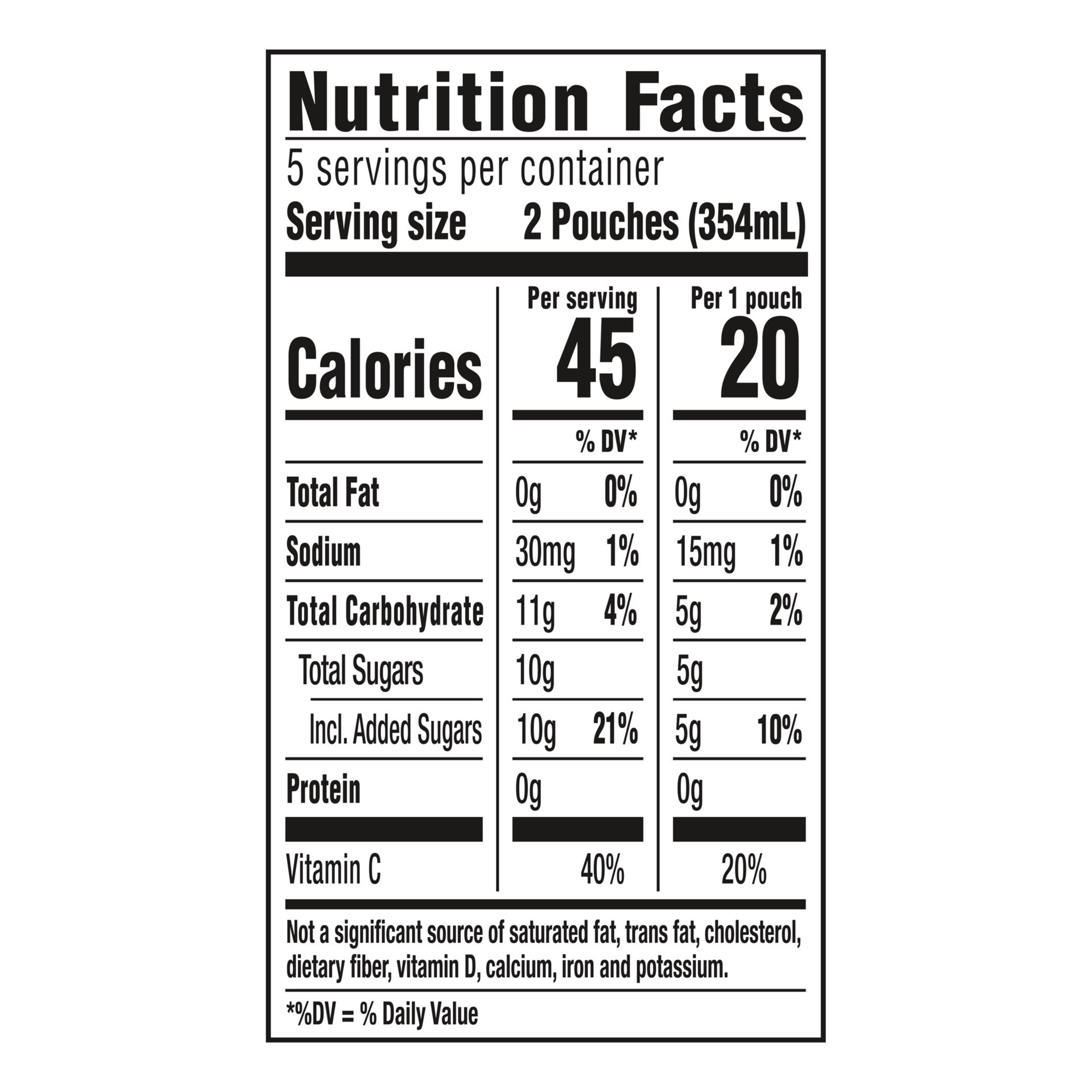 - KOOL-AID POUCHES: Contains 75% less sugar than leading regular sodas (Per 12 fl oz