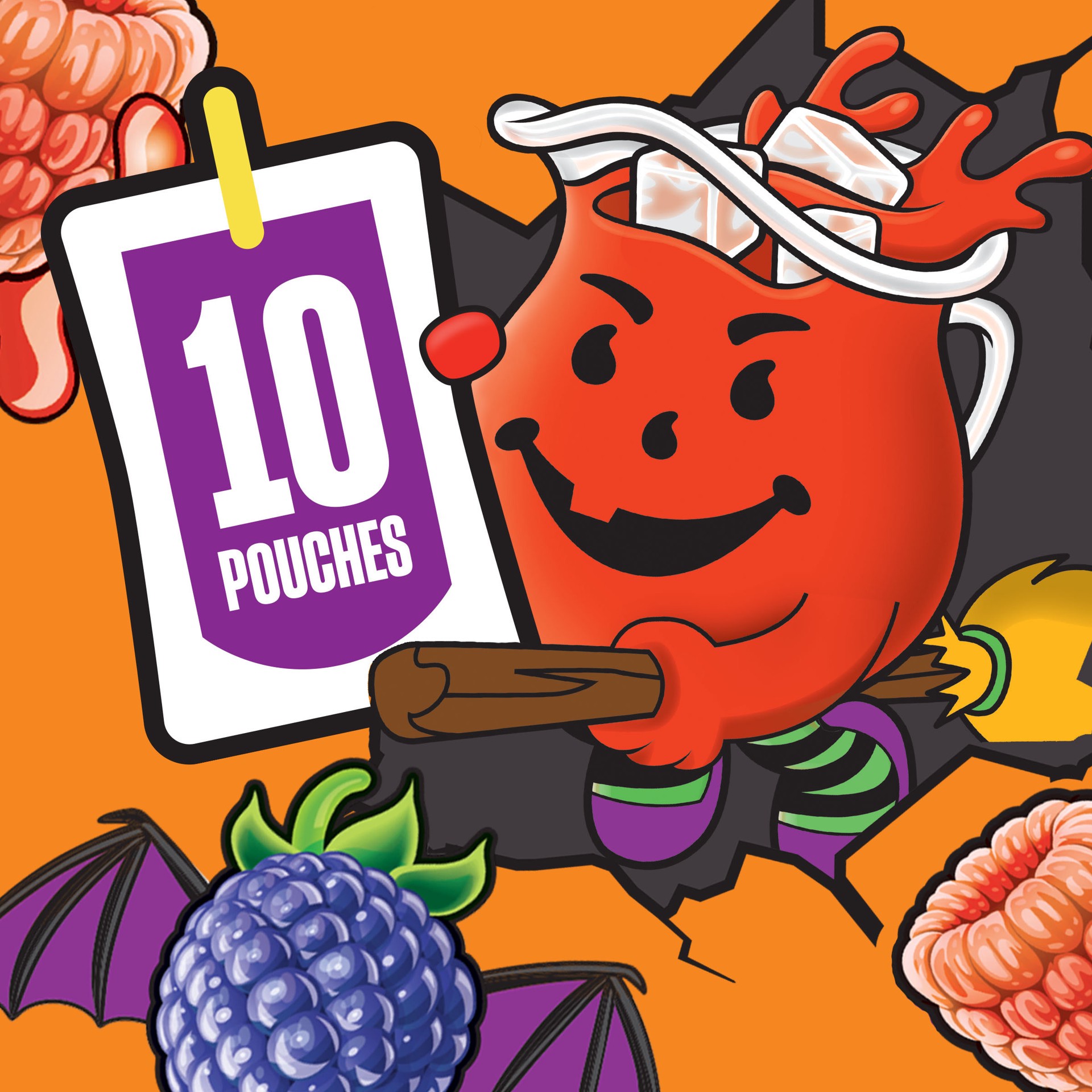 - KOOL-AID POUCHES: Ten 6 fl oz pouches of Kool-Aid Ghoul-Aid Artificially Flavored Zom-Berry Drink