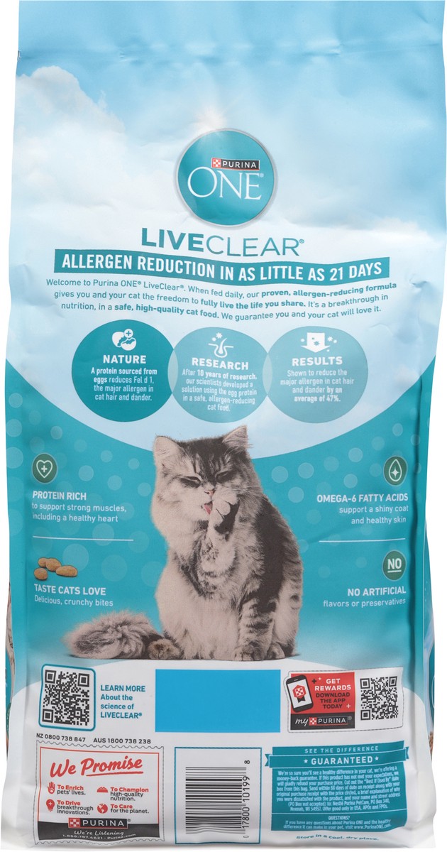 Don't let allergen sensitivities get in the way of spending quality time with your cat; serve her Purina ONE LiveClear Allergen-Reducing Food For Cats. This cat kibble reduces the major allergen in ca…