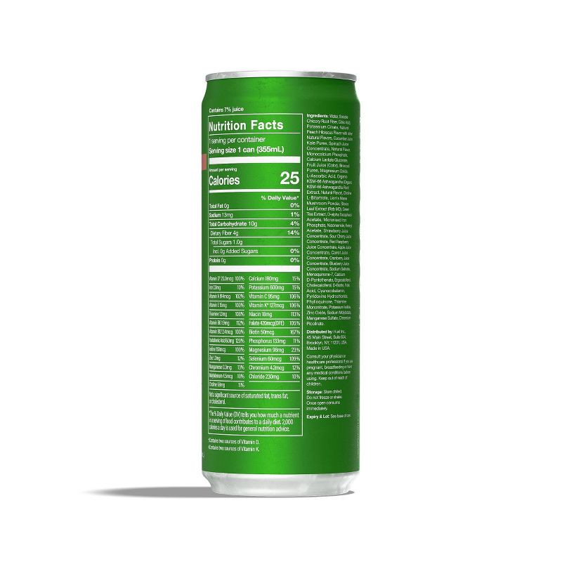 Water, Soluble Chicory Root Fiber, Citric Acid, Potassium Citrate, Natural Peach Hibiscus Flavor with other Natural Flavors, Cucumber Juice, Kale Puree, Spinach Juice Concentrate, Natural Flavor, Mono…