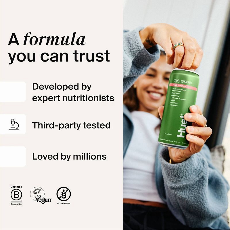 Greens, reimagined.43 nutrients. 6g fiber, electrolytes, and adaptogens—packed into one sparkling can. Super greens. Adaptogens. Just 1g of sugar.Huel Daily Greens Ready-to-drink is crisp, lightly spa…