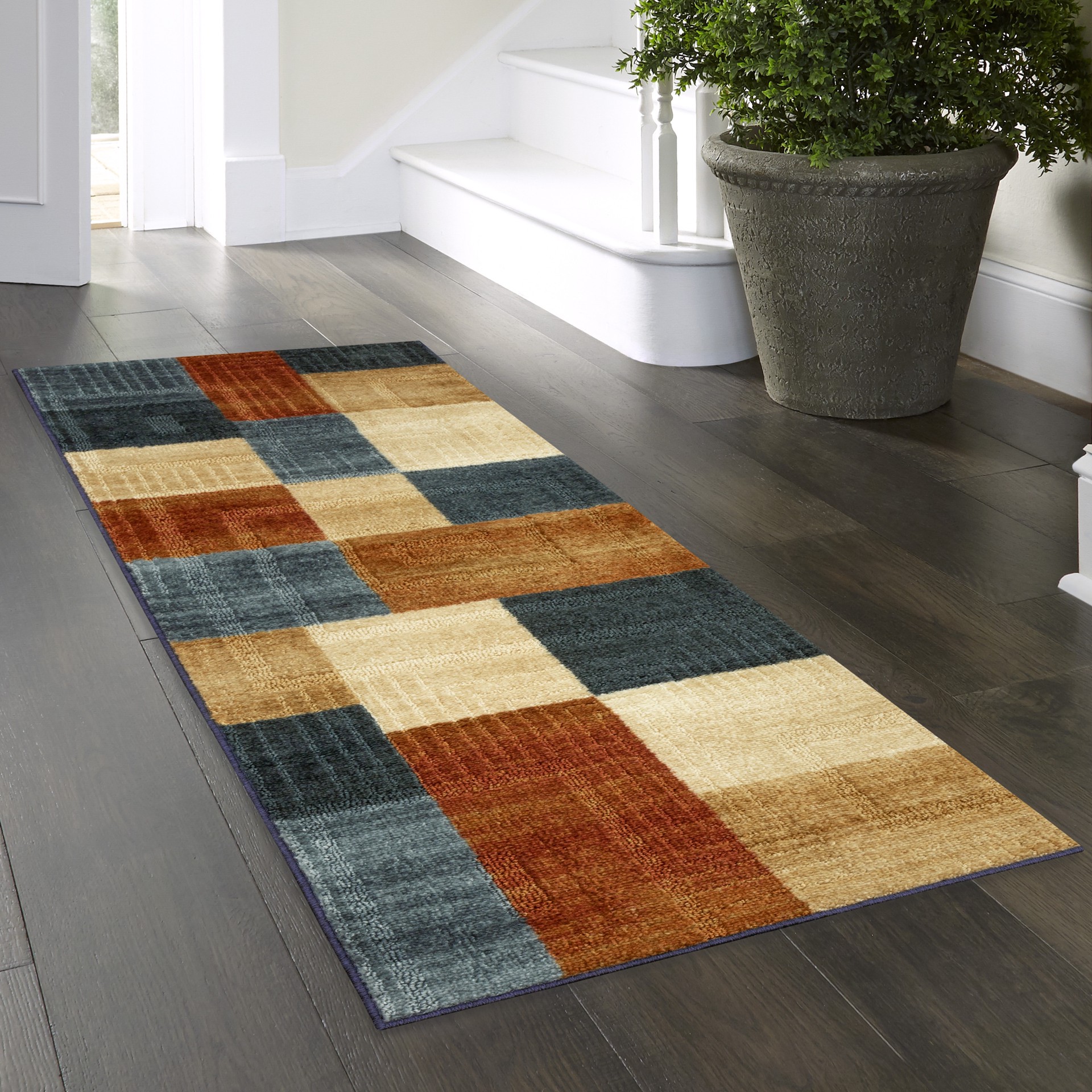 allen + roth with STAINMASTER 2 x 6 (ft) Tufted Polyester Multi Rectangular Indoor Geometric Mid-Century Modern Machine washable Runner rug