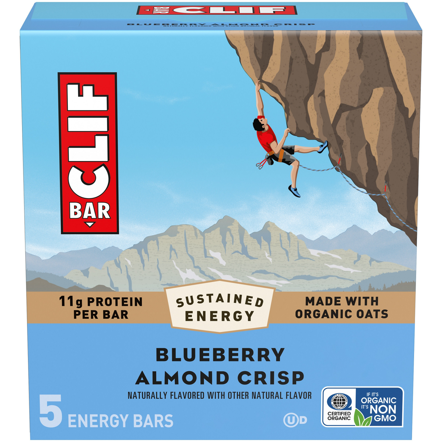 CLIF BAR - Blueberry Almond Crisp - Made with Organic Oats - Energy Bars - Non-GMO - Plant Based Protein Bars (5 Pack)