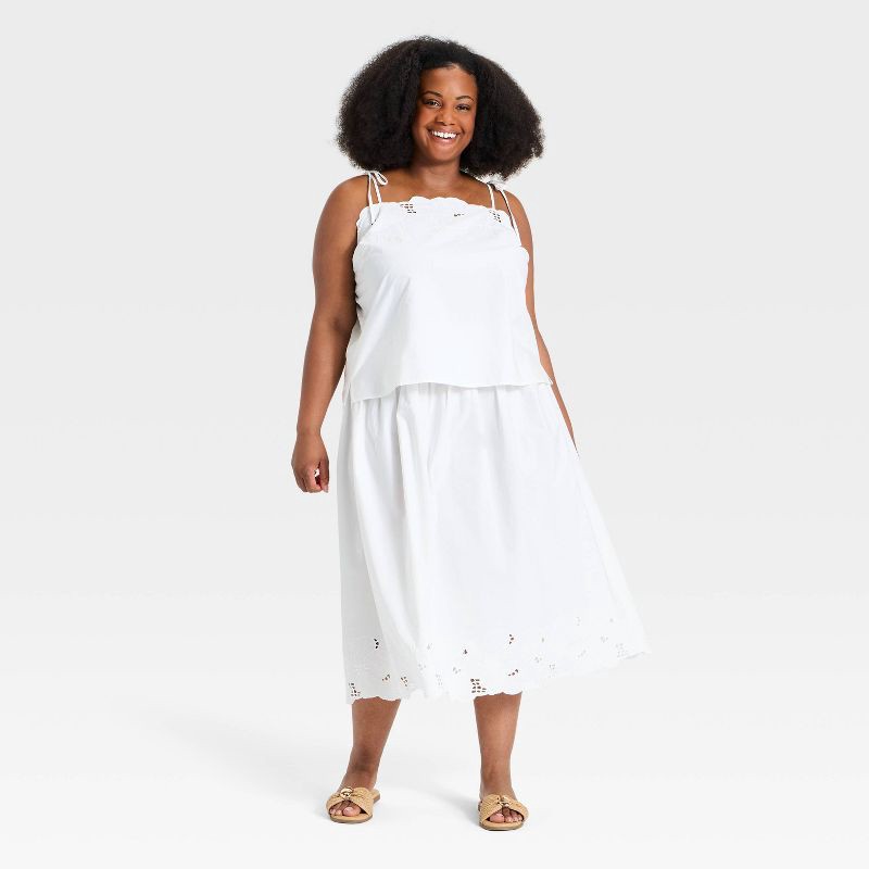 Women's Embroidered Eyelet Midi A-Line Skirt - Ava & Viv™ White 3X