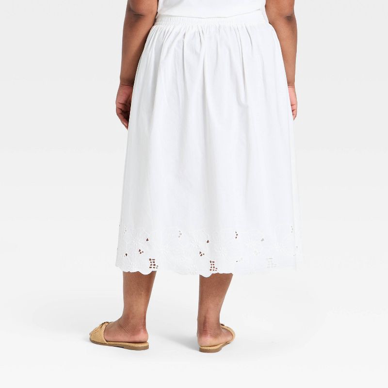 Women's Embroidered Eyelet Midi A-Line Skirt - Ava & Viv™ White XXL