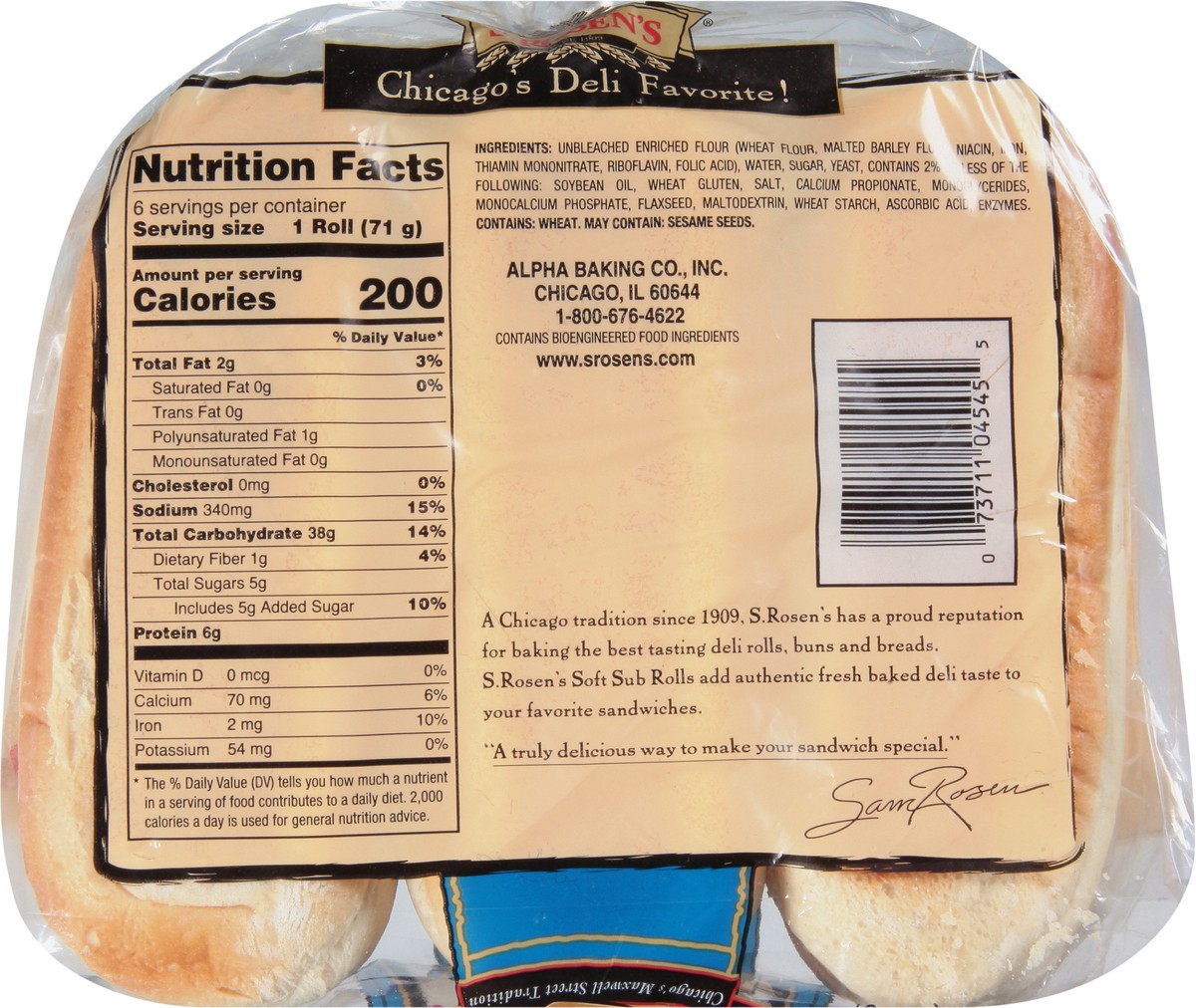 S. Rosen's Chicago Deli Style Soft Sub Rolls - 6 ea