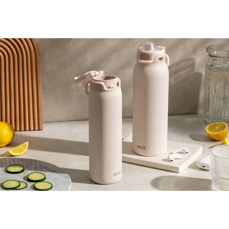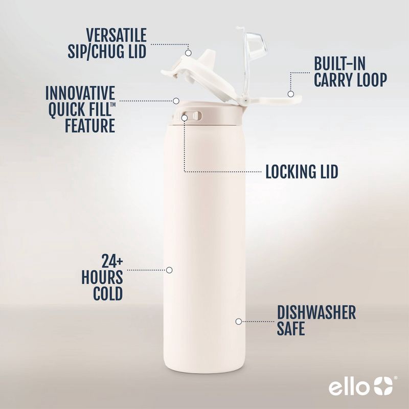 Ello Pop and Fill 32oz Stainless Steel Water Bottle Tonal Cream