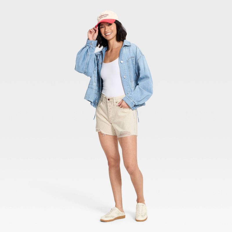Women's Mid-Rise 90's Baggy Jean Shorts - Universal Thread™ White Striped 6