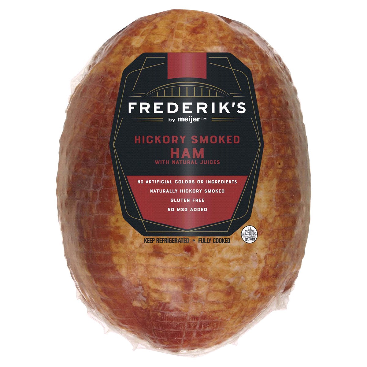 Frederik's by Meijer Hickory Smoked Ham is a delicious choice for your meals, naturally hickory smoked for that authentic, rich flavor. Free from artificial colors and ingredients, this gluten-free ha…