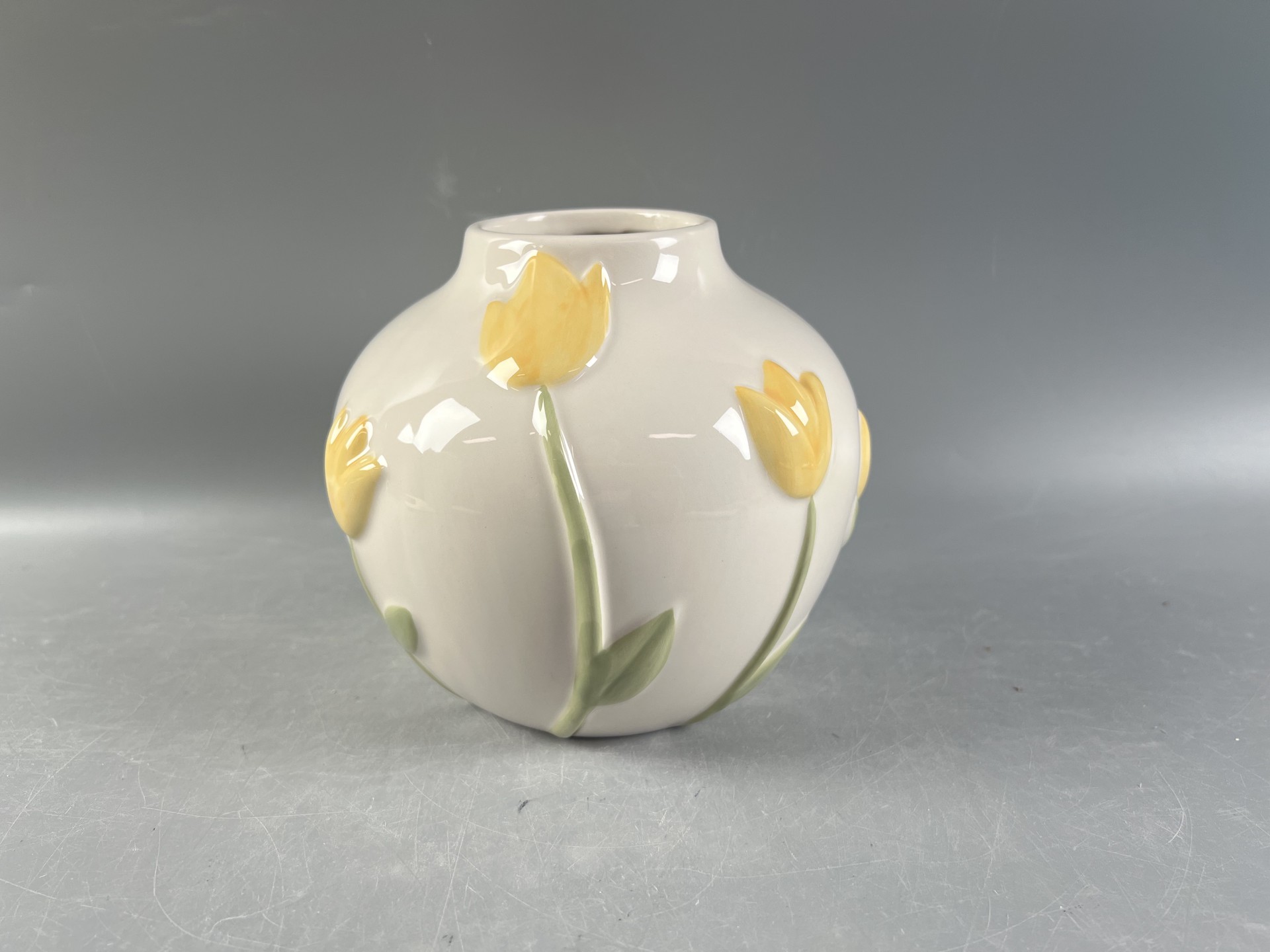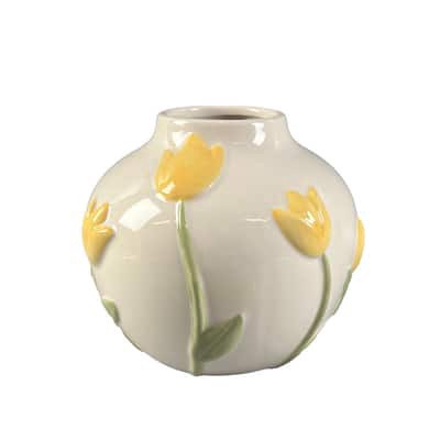 Purchase this 6" Yellow Tulip Ceramic Vase by Ashland at Michaels. Add floral style to your spring space with this unique vase. The round bowl vase has dimensional yellow tulips all around the cream b…