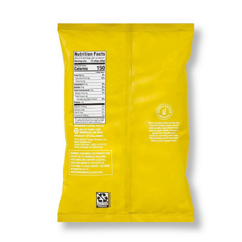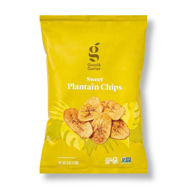 These Sweet Plantain Chips from Good & Gather™ make a fun, unique addition to your snack collection. While you usually expect saltiness from chips, these plantain chips are just a tad sweet, making th…