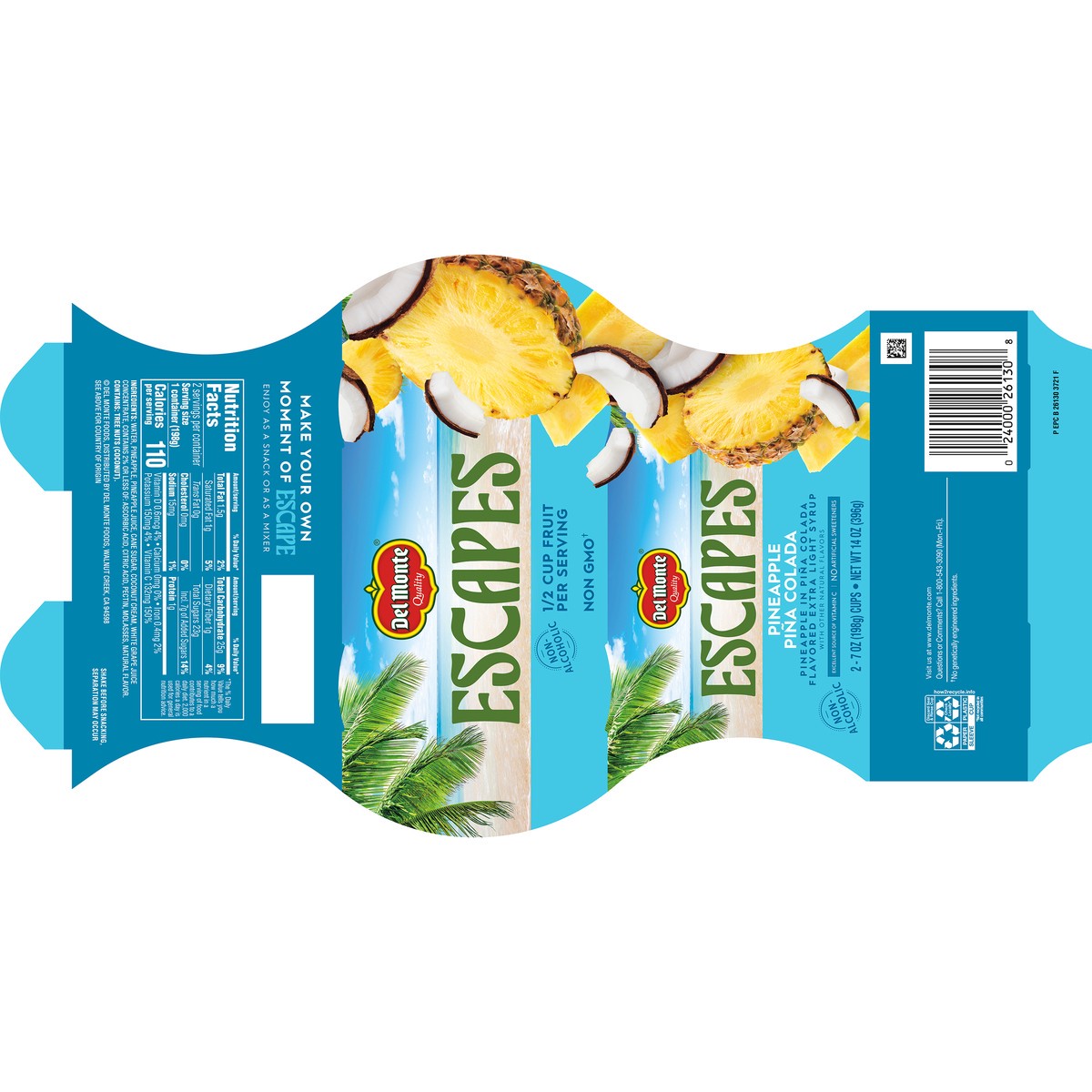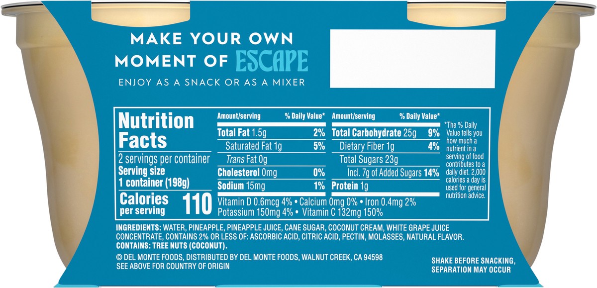 Del Monte Escapes Pineapple Pina Colada 2 - 7 oz Cups
