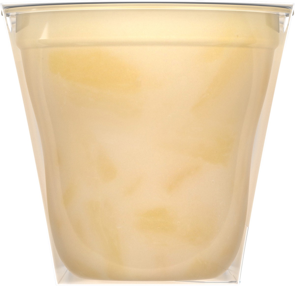 - Non-GMO** fruit cups with pineapple chunks in pina colada flavored extra light syrup