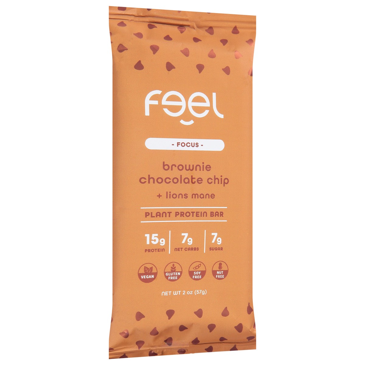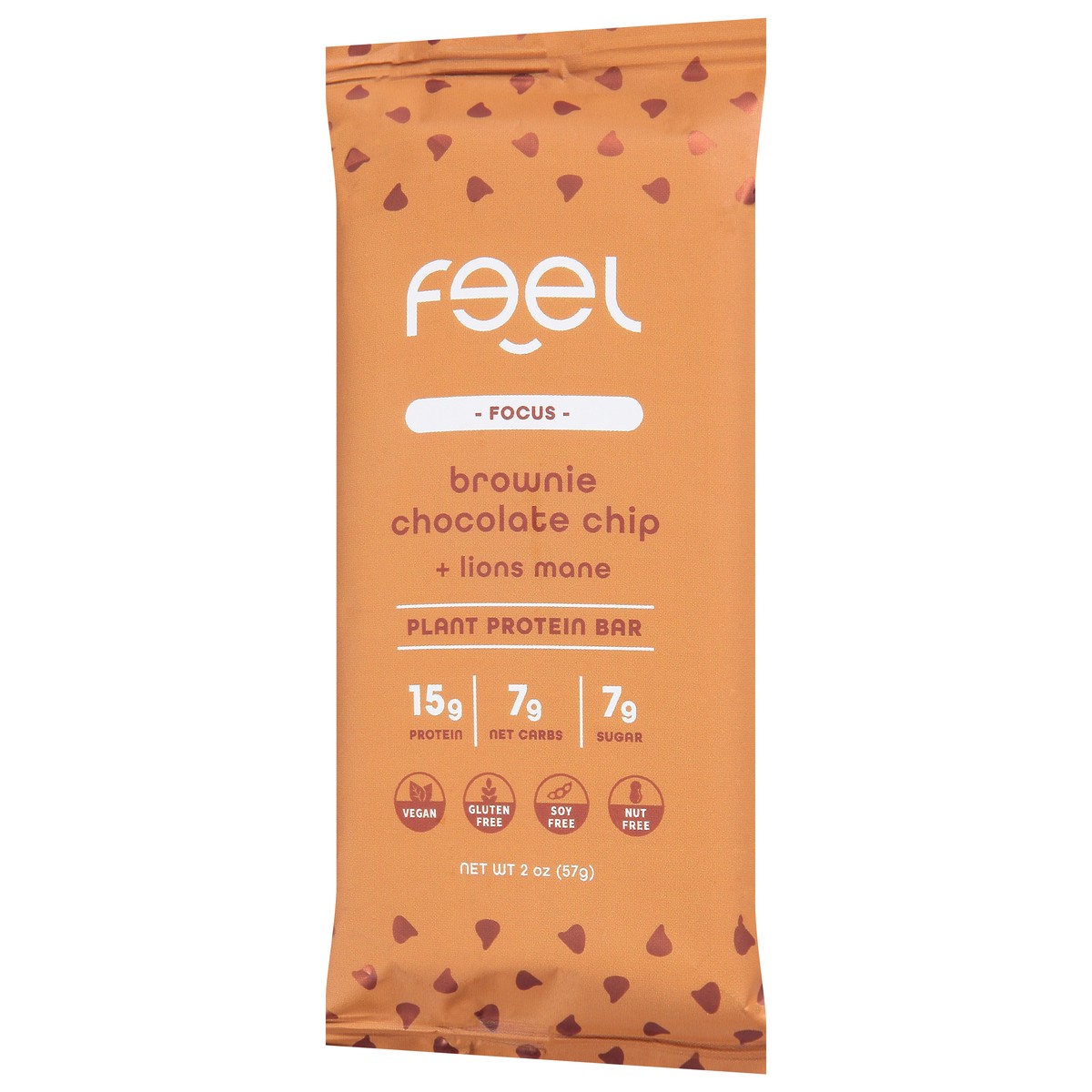 Feel Focus Brownie Chocolate Chip + Lions Mane Plant Protein Bar 2 oz