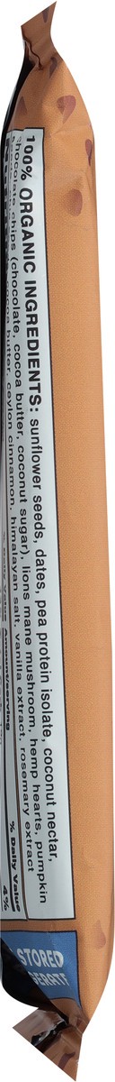 100% Organic Ingredients: Sunflower Seeds, Dates, Pea Protein Isolate, Coconut Nectar, Chocolate Chips (Chocolate, Cocoa Butter, Coconut Sugar), Lions Mane Mushroom, Hemp Hearts, Pumpkin Seeds, Chia S…