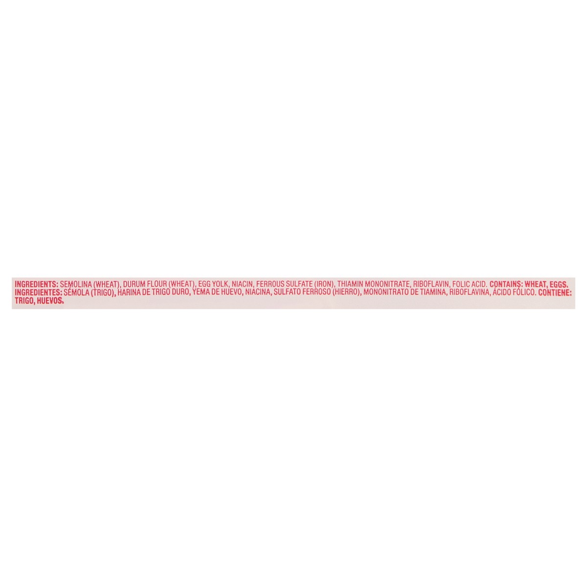 Semolina (Wheat), Durum Flour (Wheat), Egg Yolk, Niacin, Ferrous Sulfate (Iron), Thiamin Mononitrate, Riboflavin, Folic Acid.