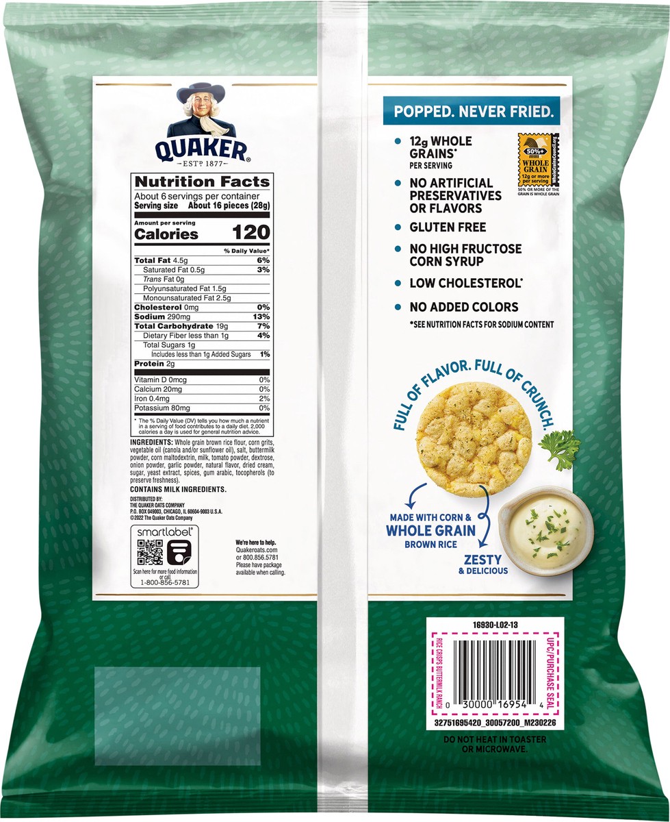 Quaker Popped Rice Crisps Gluten Free Buttermilk Ranch - 6.06 Oz