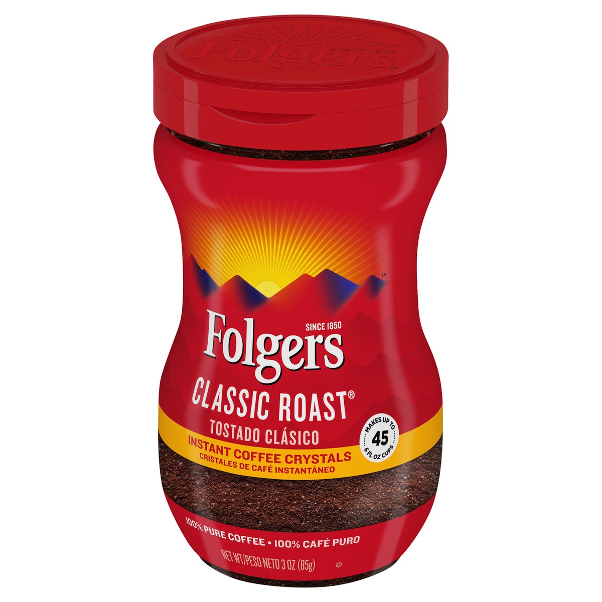 Get the Folgers coffee experience you love in an instant. Folgers Classic Roast Instant Coffee crystals are the result of unique processing to create a rich aroma for you to enjoy alongside deliciousl…