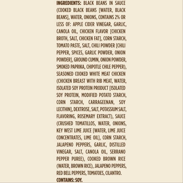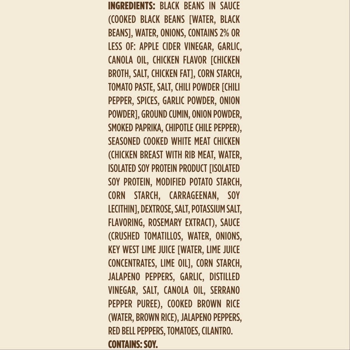 Black Beans in Sauce (Cooked Black Beans [Water, Black Beans], Water, Onions, Contains 2% or Less of: Apple Cider Vinegar, Garlic, Canola Oil, Chicken Flavor [Chicken Broth, Salt, Chicken Fat], Corn S…