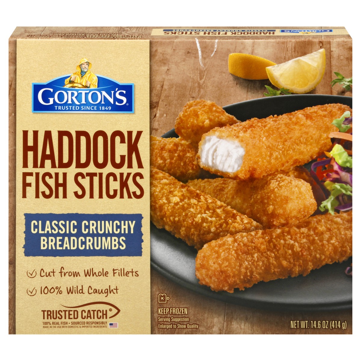 Classic crunchy breadcrumbs. No artificial flavors. 90 mg of EPA and DHA Omega-3 fatty acids per serving. Trusted since 1849. Cut from whole fillets. Trusted catch. 100% real fish. Sourced responsibly…
