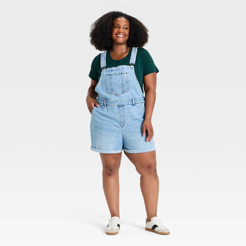 Women's Denim Shortall - Ava & Viv™ Light Wash 18