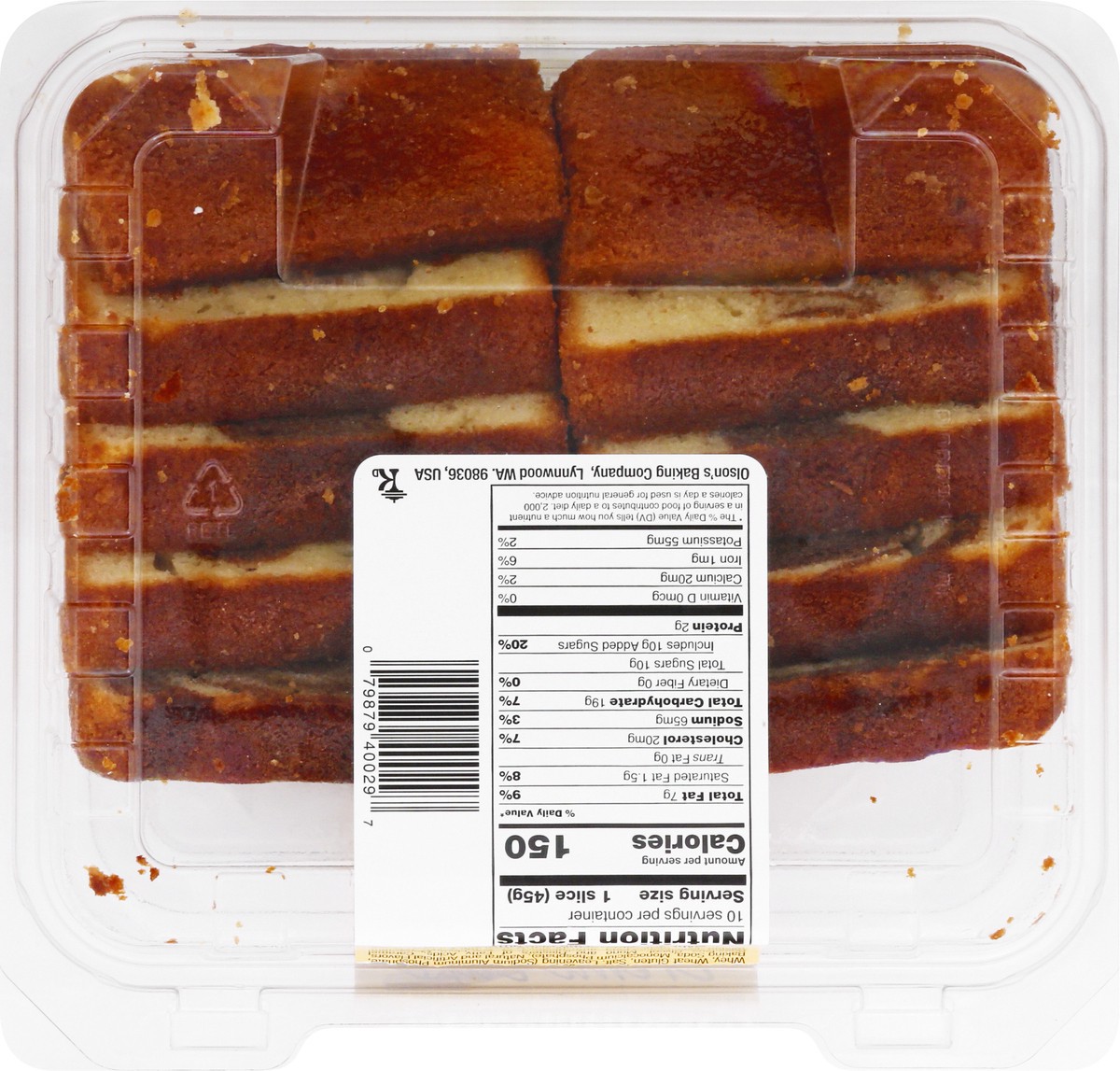 Olson's Baking Co. Cinn-a-Butter Creme Cake, Sliced