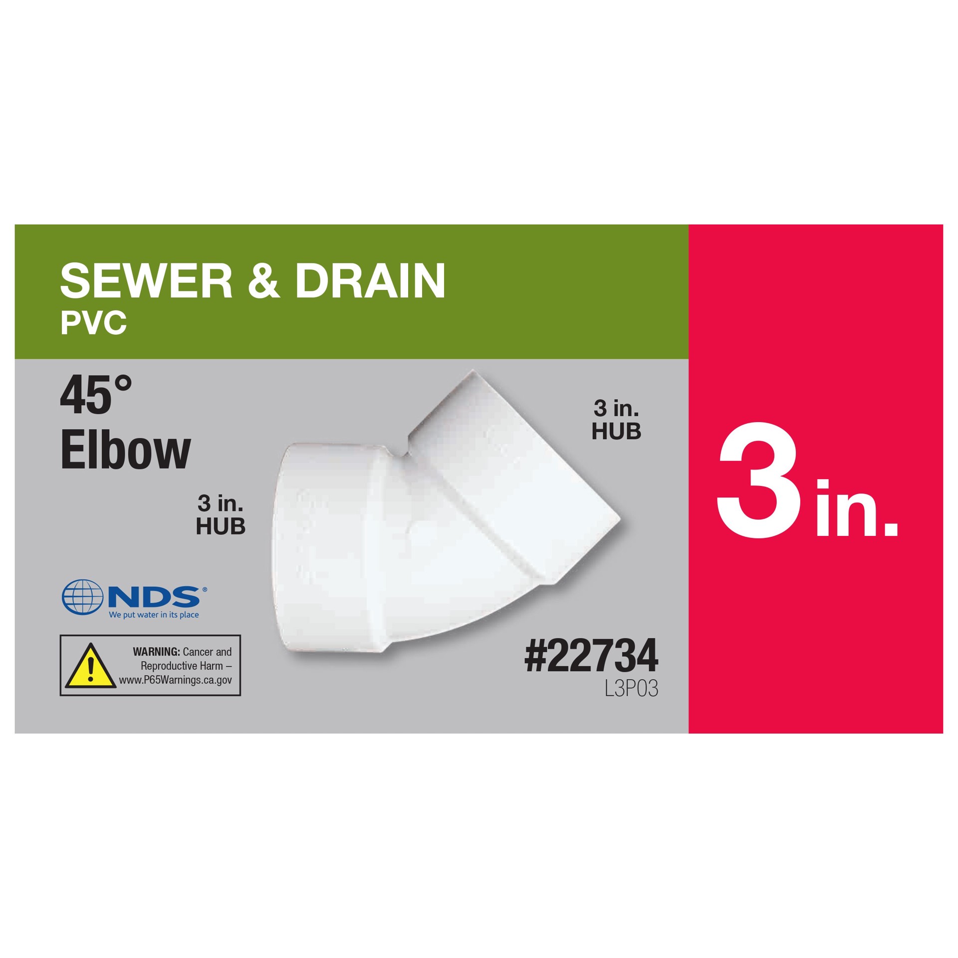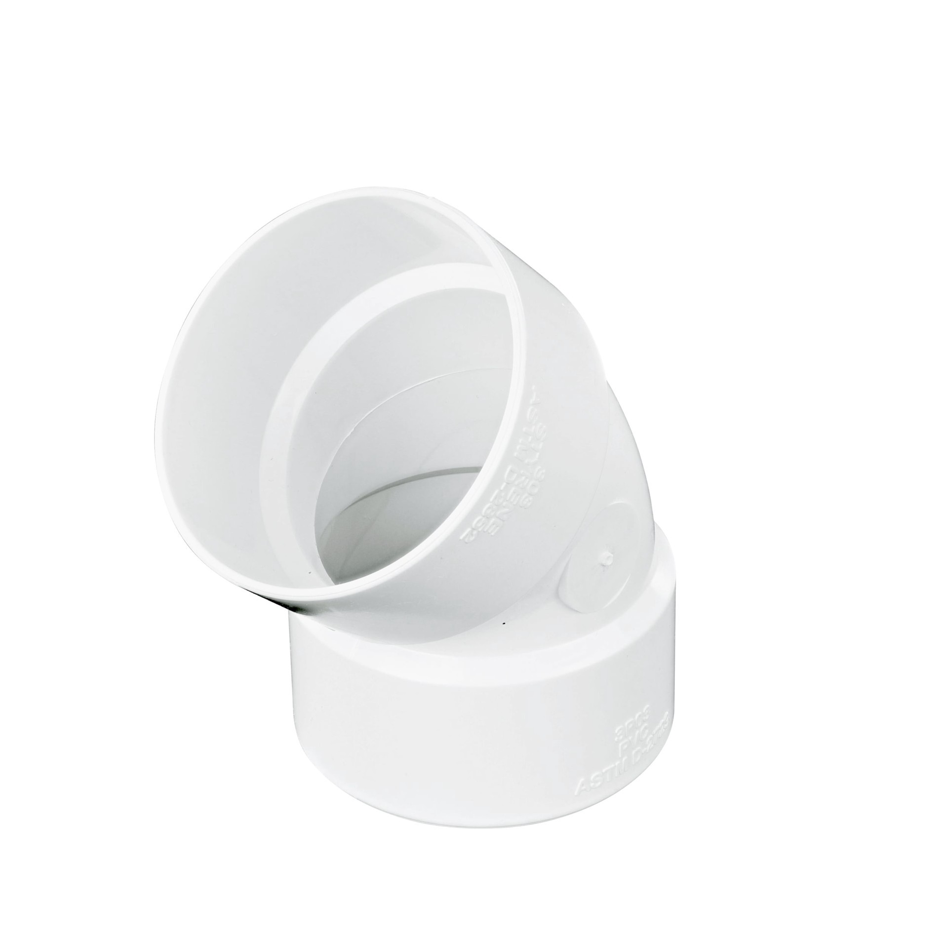 Makes a 45° turn in 3 inch Sewer and Drain pipeline. Connects 3 inch Sewer and Drain pipe to select drainage parts to convey water. Made of PVC for Hub X Hub solvent-weld connections. Adds a 45° turn …