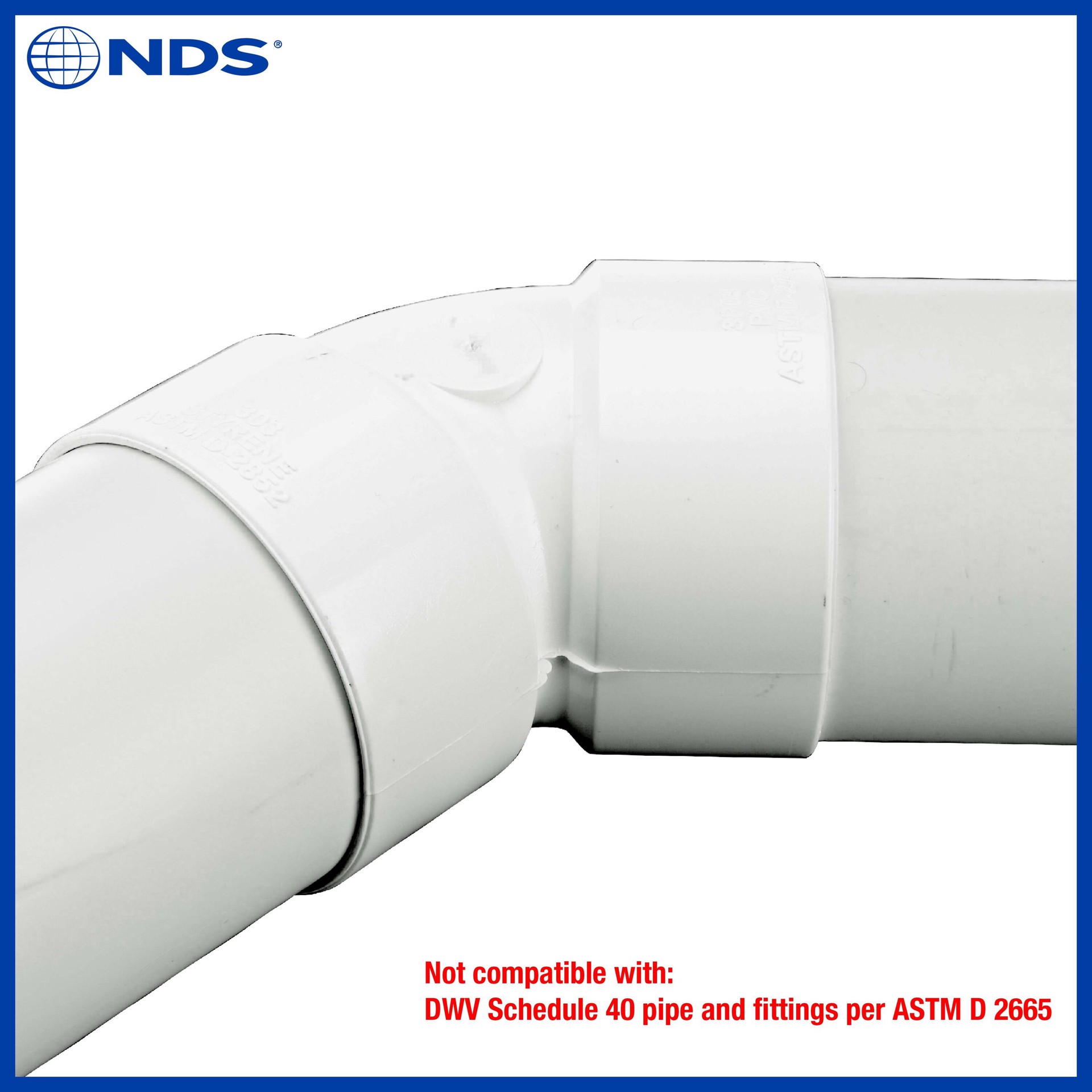 NDS PVC Sewer and Drain 45 Degree Elbow, 3 in. Hub X Hub