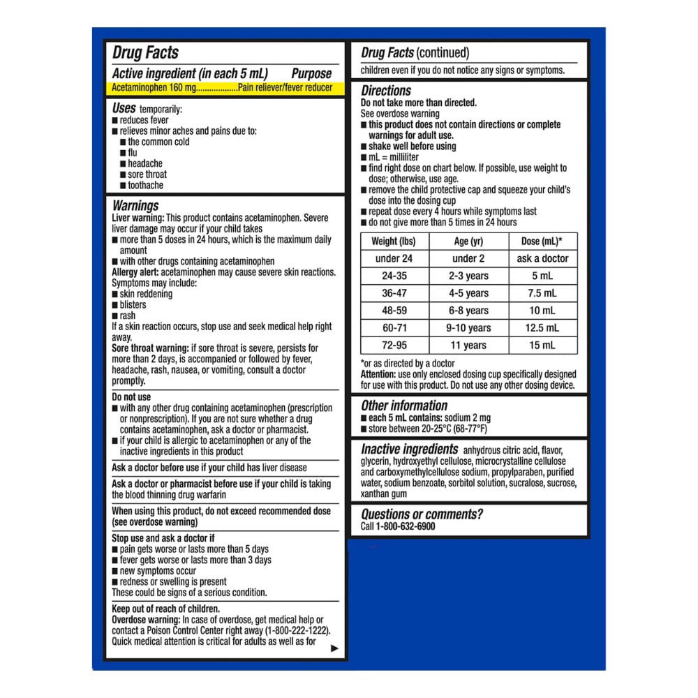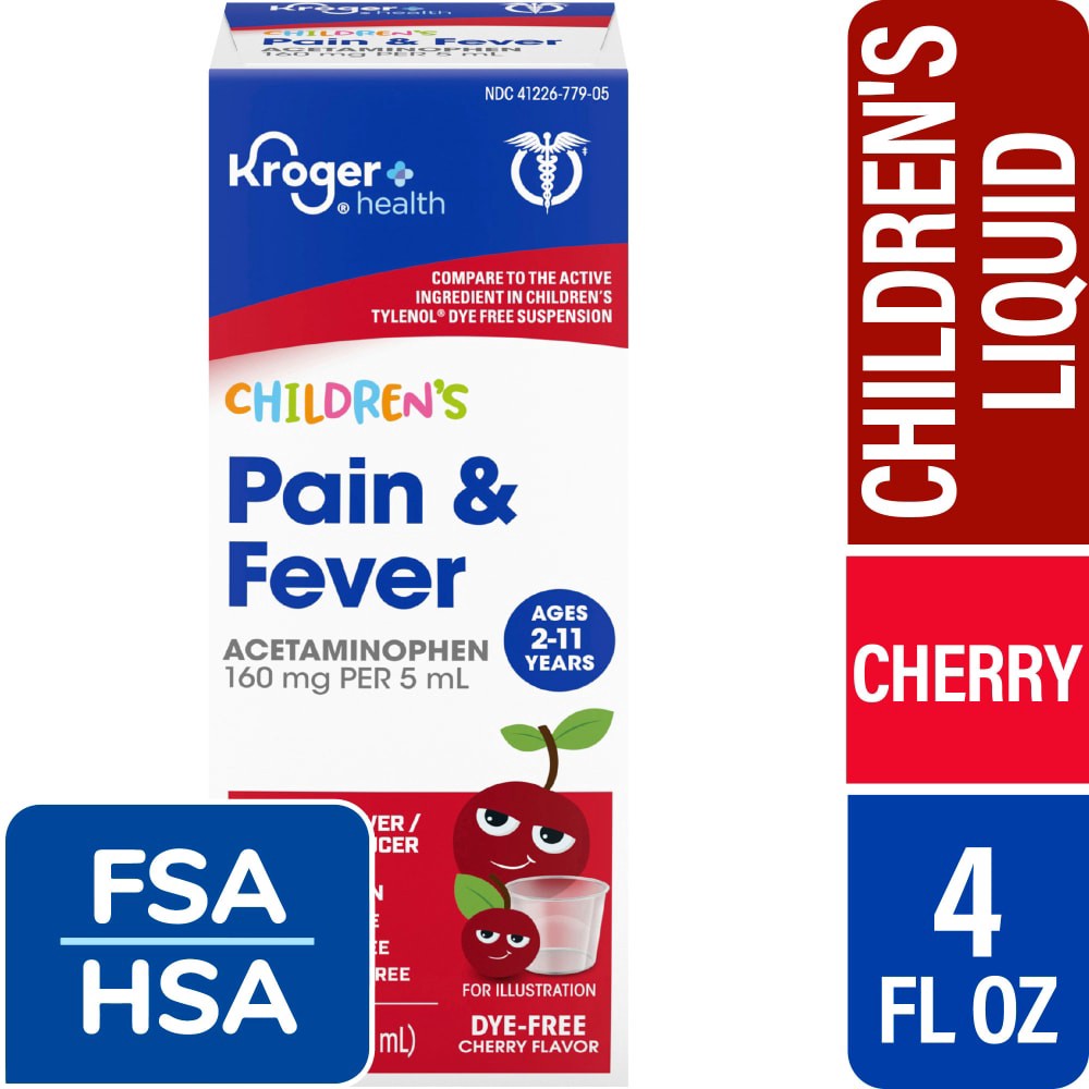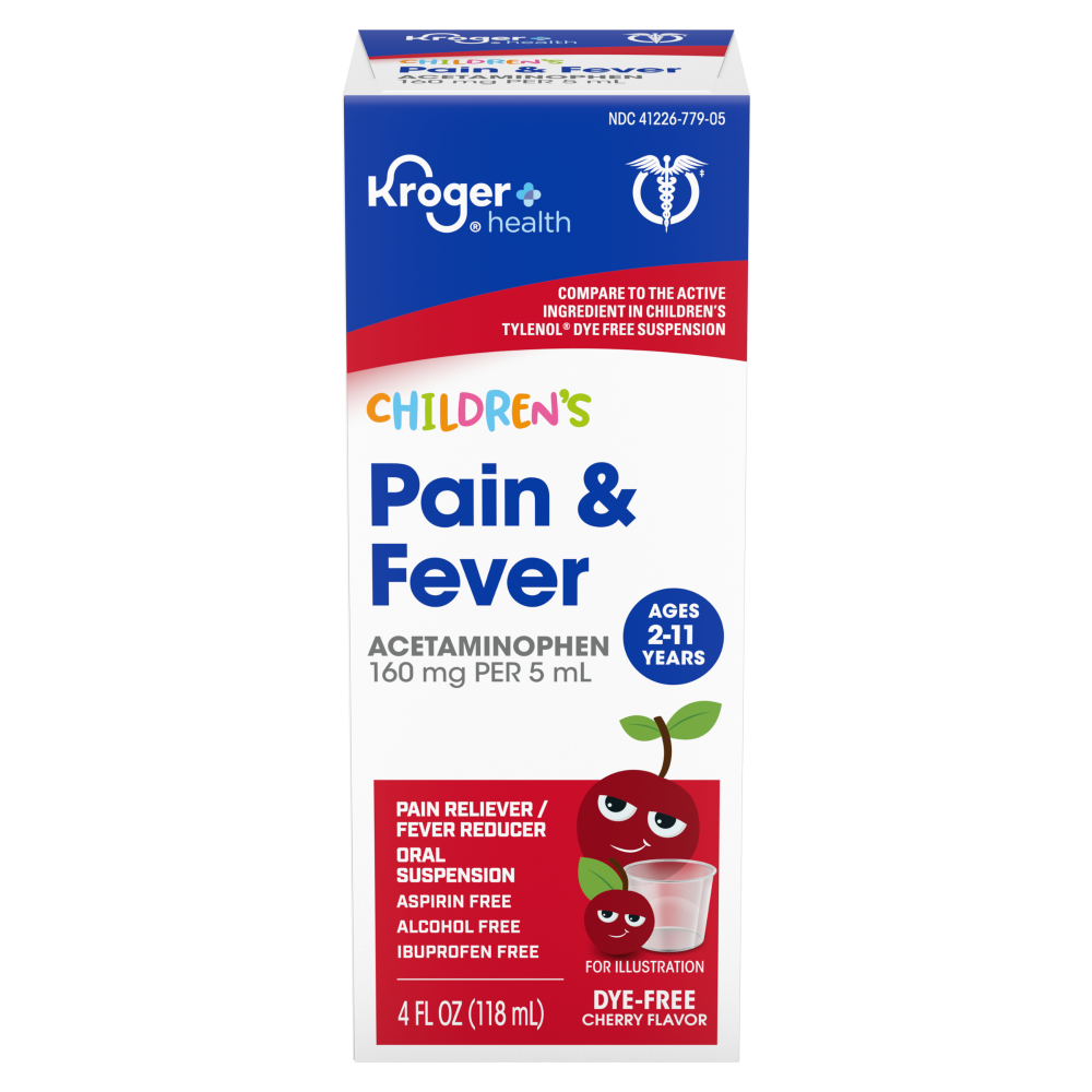 Kroger Health Children's Pain & Fever Acetaminophen. Compare to the active ingredient in children's tylenol dye free suspension.Oral SuspensionAspirin FreeAlcohol FreeIbuprofen FreeAges 2-11 years