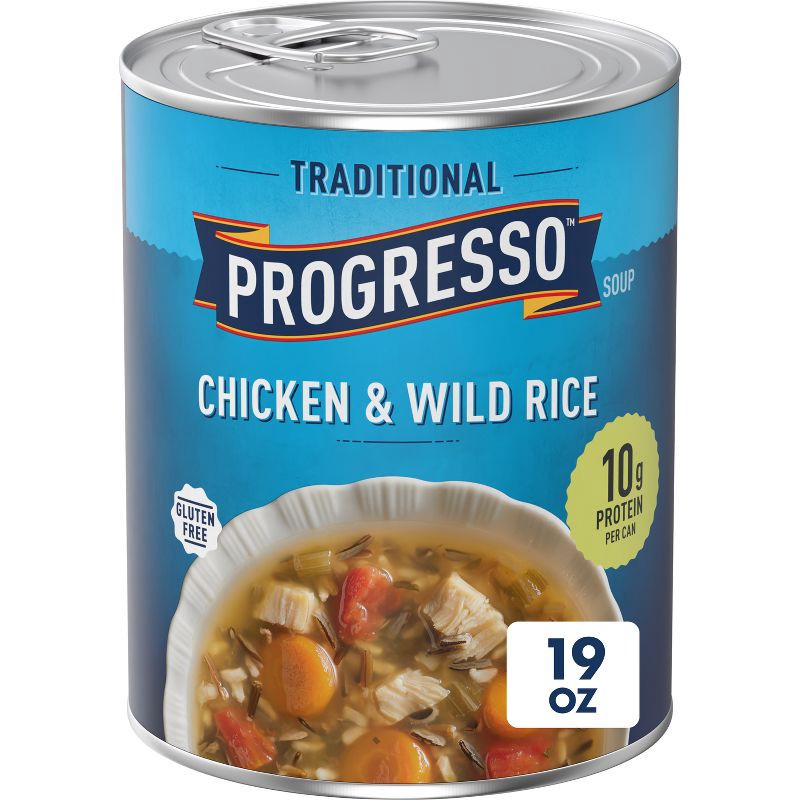 - CONTAINS: One 19 oz can of shelf-stable Progresso Traditional Chicken and Wild Rice canned soup; About two servings per can