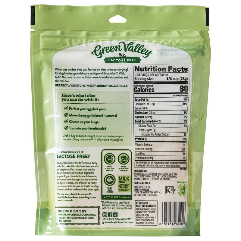 Green Valley Shredded Lactose Free Mozzarella Cheese Shreds - 6oz