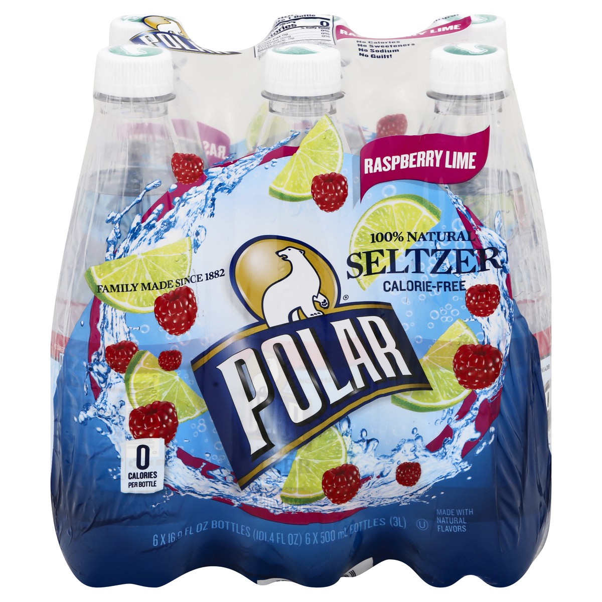 Made with natural flavors. 0 calories per bottle. Calorie-free. No calories. No sweeteners. No sodium. No guilt! Family made since 1882. 100% natural. Refreshingly natural. Contains no juice.