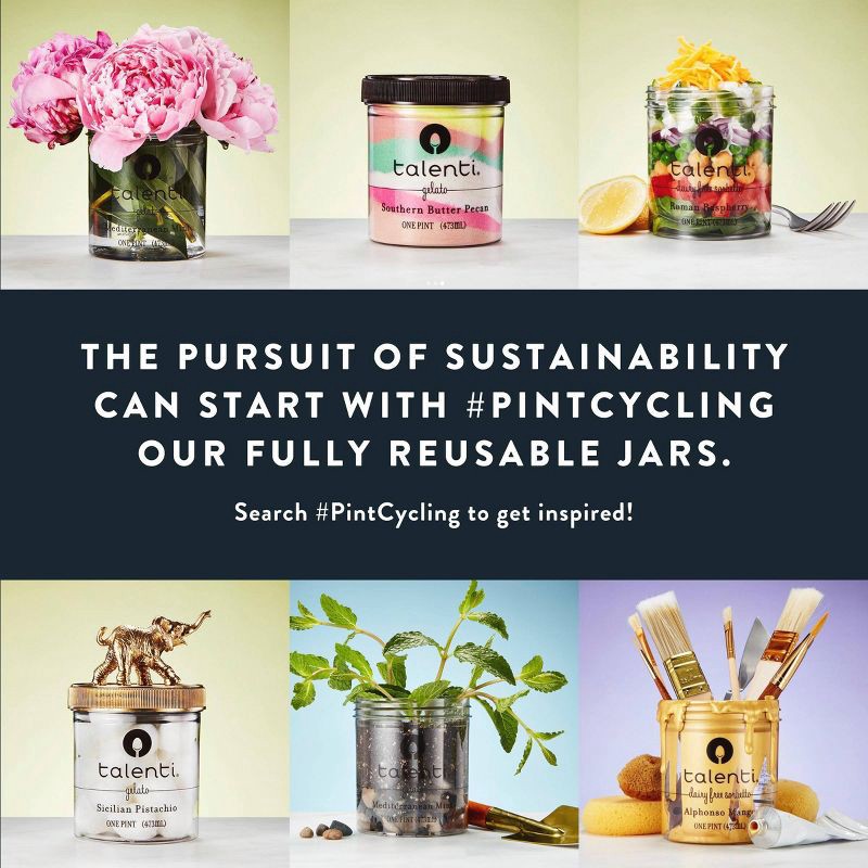 - Starting Jan 1, 2020, Talenti Gelato and Sorbetto Jars have been made with 100% Recycled Plastic