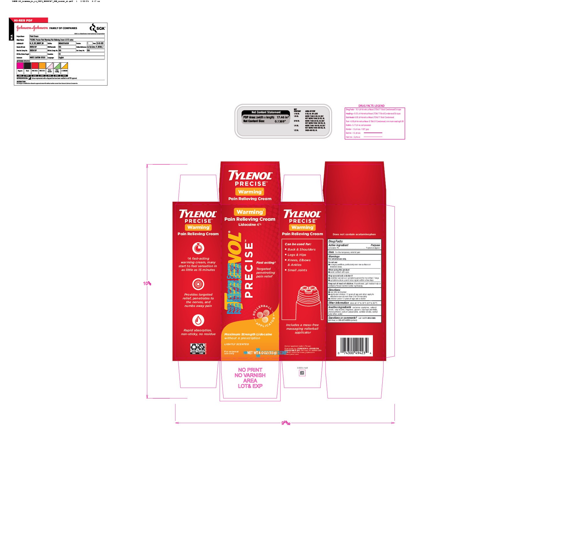 Tylenol Precise Warming Pain Rlf Cream - 4 Oz