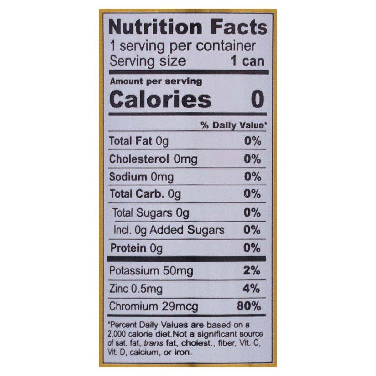 Carbonated Water, Amino Acid Blend: 2.6g L-Leucine, L-Threonine, L-Lysine, L-Isoleucine, L-Valine Natural Flavor, Potassium Citrate, Citric Acid, Zinc Citrate, Chromium Picolinate.
