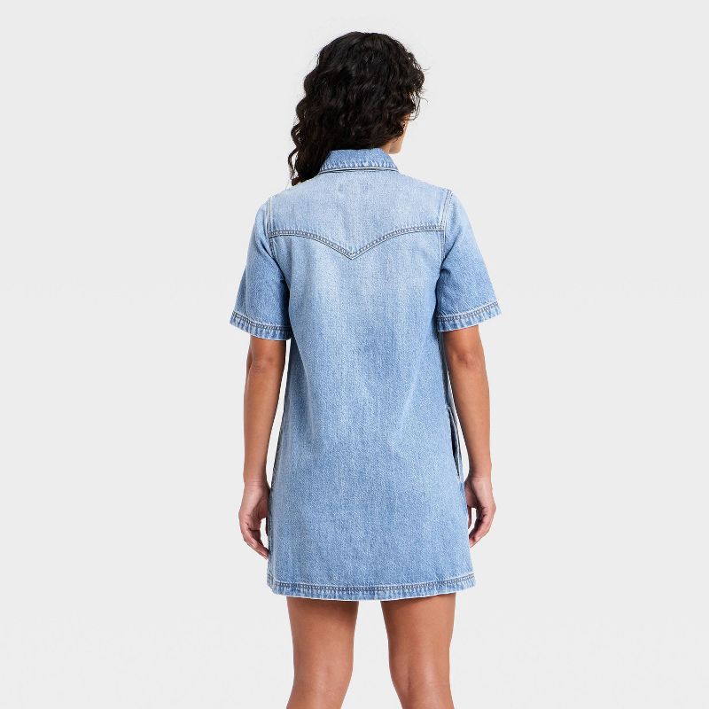 Women's Short Sleeve Denim Mini Shirtdress - Universal Thread™ Medium Wash L