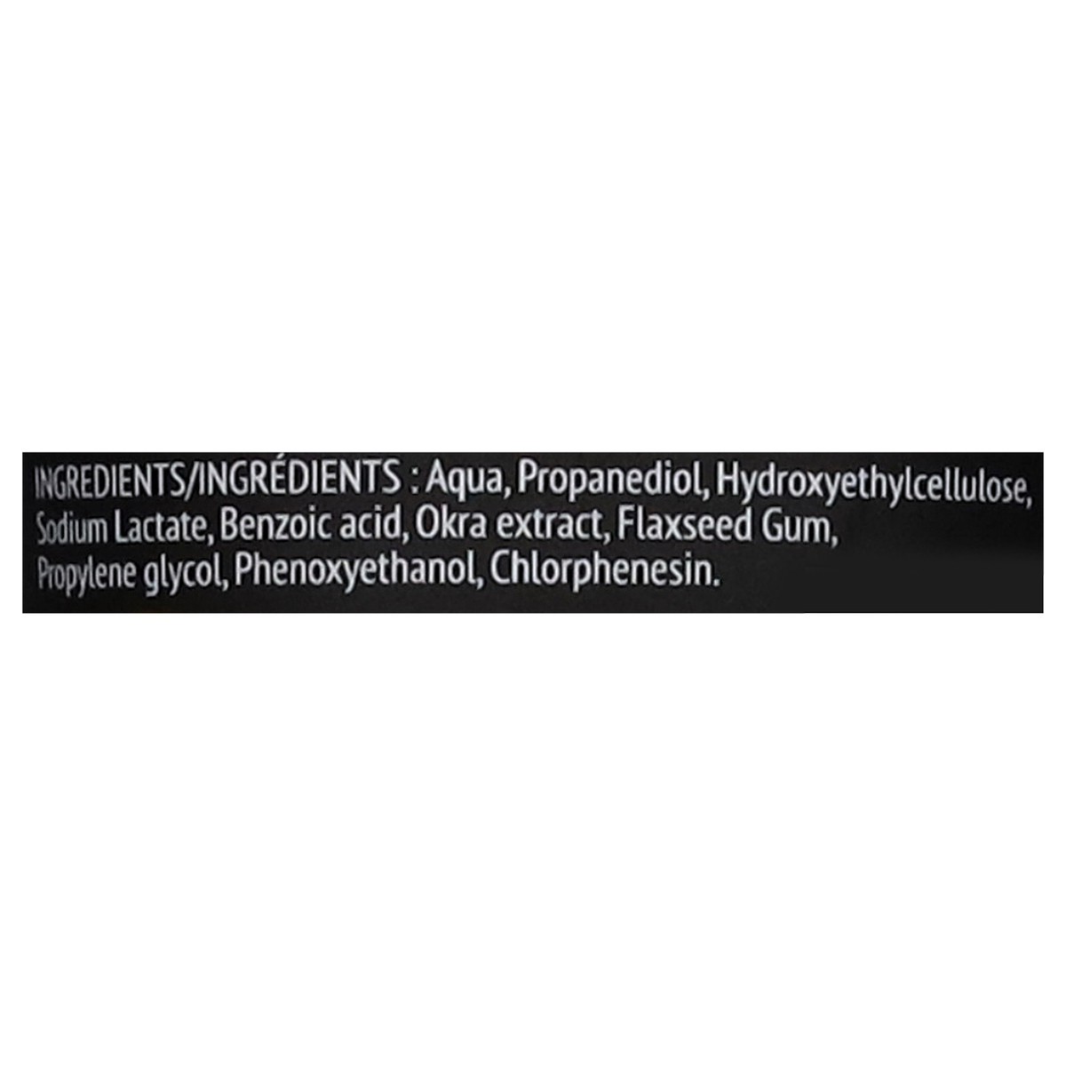 INGREDIENTS/INGRÉDIENTS : Aqua, Propanediol, Hydroxyethylcellulose, Sodium Lactate, Benzoic acid, Okra extract, Flaxseed Gum, Propylene glycol, Phenoxyethanol, Chlorphenesin.' '