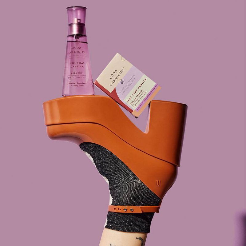 - Body mist spray with notes of bergamot, cocoa bean, and amber