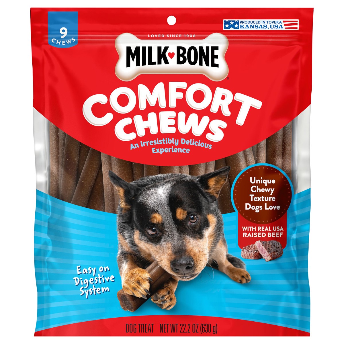 Milk-Bone Comfort Chews with Unique Chewy Texture and Real Beef, 22.2 oz Bag of 9 Chews