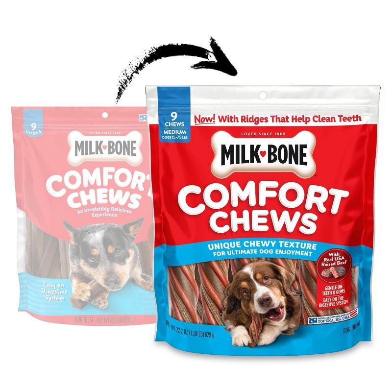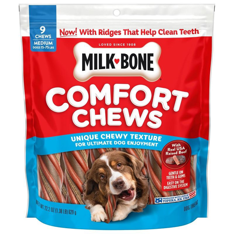 - CONTAINS: One 22.2-oz. bag of Milk-Bone Comfort Chews (nine dog chews)